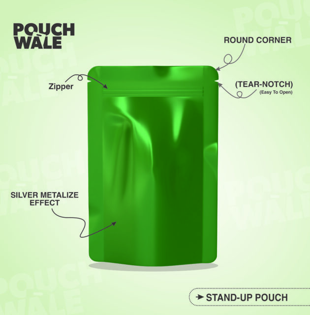 100-150gm Metallic Green Stand-Up Pouch with Zipper